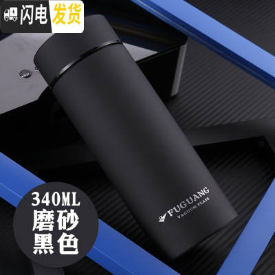 三维工匠保温杯 男女士定制水杯大容量304不锈钢刻字学生便携泡茶杯子 磨砂黑色340