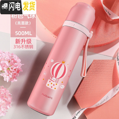 三维工匠保温杯男女便携水杯子简约大容量不锈钢316学生可爱儿童水壶 500粉色气球