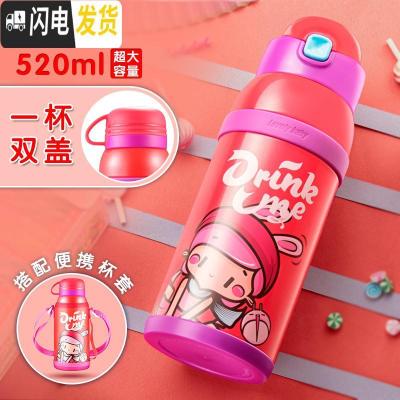 三维工匠儿童旅行壶316不锈钢 带吸管男女学生水杯子保温杯宝宝水壶 魅力红
