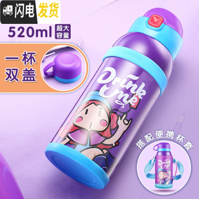 三维工匠儿童旅行壶316不锈钢 带吸管男女学生水杯子保温杯宝宝水壶 奇趣紫
