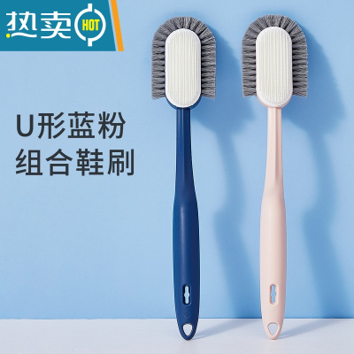敬平鞋刷软毛不伤鞋长柄专用刷洗衣刷器家用硬毛多功能硅胶洗鞋刷子 [粉色+蓝色]U型洗刷护三合一