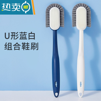 敬平鞋刷软毛不伤鞋长柄专用刷洗衣刷器家用硬毛多功能硅胶洗鞋刷子 [蓝色+白色]U型洗刷护三合一