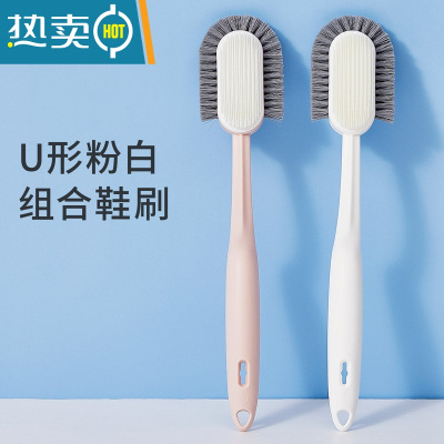 敬平鞋刷软毛不伤鞋长柄专用刷洗衣刷器家用硬毛多功能硅胶洗鞋刷子 [白色+粉色]U型洗刷护三合一