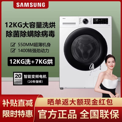 [AI神5系]三星WD12DG5B14BWSC 洗烘一体12公斤全自动 超薄嵌入滚筒洗衣机