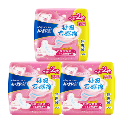 护舒宝秒吸云感棉轻薄日用(10+2)片卫生巾*3包