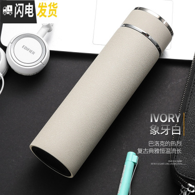三维工匠保温杯男士杯子男商务不锈钢定制便携车载水杯女大容量泡茶杯 象牙白[304不锈钢-送杯刷]