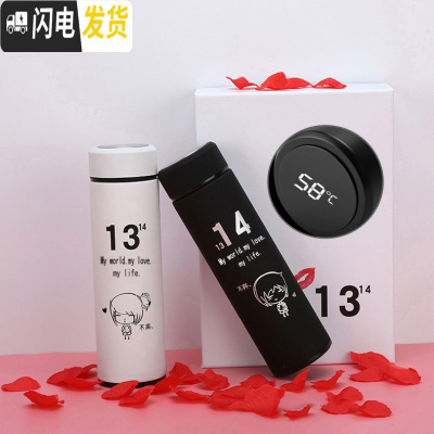 三维工匠1314情侣款保温杯一对韩国创意潮流简约男女便携水杯刻字车载杯子 不离不弃黑白(智能显温)