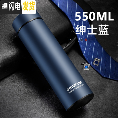 三维工匠保温杯男士女大容量不锈钢水杯便携商务刻字车载茶杯子 绅士蓝-550