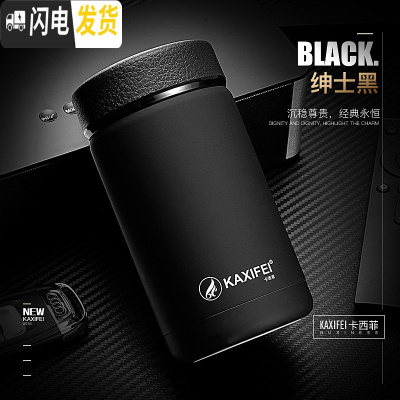 三维工匠保温杯便携不锈钢车载水杯 商务水杯 情侣保温杯个性定制 330黑色-带茶网