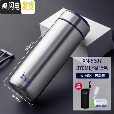 三维工匠不锈钢保温杯男士商务车载大容量水杯便携女办公泡茶杯子 165深蓝色XN-8600送杯套杯刷除垢剂
