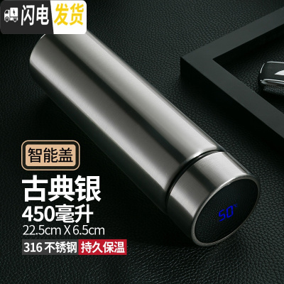 三维工匠智能保温杯男女士车载便携商务礼品水杯子学生大容量茶杯定制 智能款_古典银316