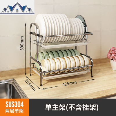 厨房碗架沥水架304不锈钢碗碟架2层置物架放碗筷刀具用品收纳架子 三维工匠