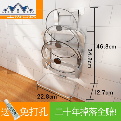 厨房置物架免打孔304不锈钢锅盖架壁挂式带接水盘刀具架收纳 三维工匠