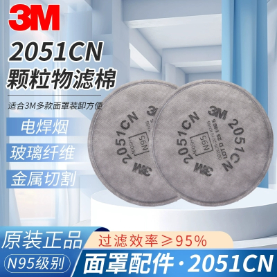 3M 2051滤棉搭配防尘面具KN95工业粉尘电焊烟玻璃纤维PM2.5防护口罩