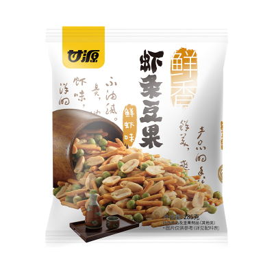 甘源虾条豆果鲜虾味烤肉味285g巨好吃的小零食 解馋休闲食品小吃