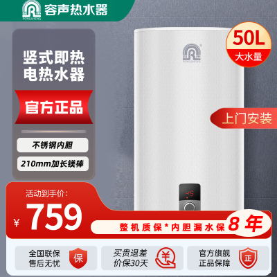 容声速热电热水器B2W5V竖式即热电热水器2500W不锈钢内胆家用小户型超薄扁桶 50升/竖式安装/
