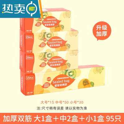 敬平加厚保鲜袋密封袋子自封家用带封口冰箱收纳塑封袋包装袋小号 双筋加厚大中小[95只] 1