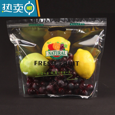 敬平透明夹链水果包装袋子葡萄提子通用手提自封自立精品保鲜袋 2斤装“新鲜水果”图案 26.5*21 100只