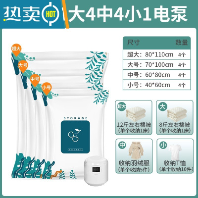 敬平真空压缩袋收纳袋子抽包装袋空气大号装被子子棉被家用羽绒服正空 D:[加厚11件套]5大4小赠手泵电泵(12斤内棉被+