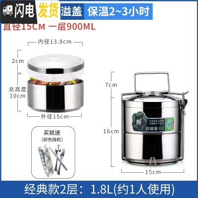 三维工匠大容量多层保温饭盒不锈钢家用三层双层送餐盒手提便携提篮带饭桶 [每层900]2层1.8(送餐具)