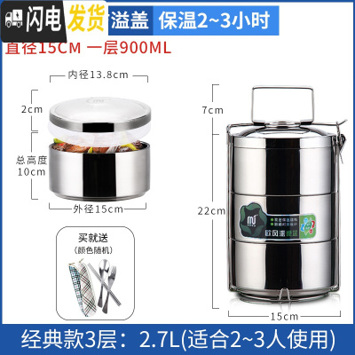三维工匠大容量多层保温饭盒不锈钢家用三层双层送餐盒手提便携提篮带饭桶 [每层900]3层2.7(送餐具)