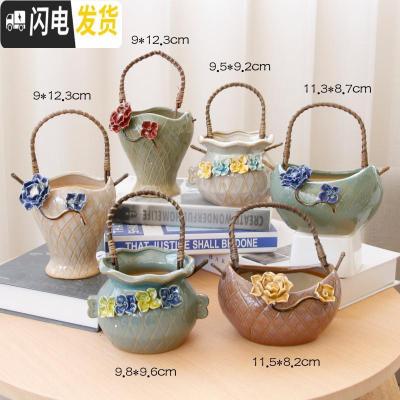 三维工匠韩式简约创意手工手绘捏花多肉花盆陶瓷花盆大小花盆 V0686个精美捏花提篮 中花盆容器