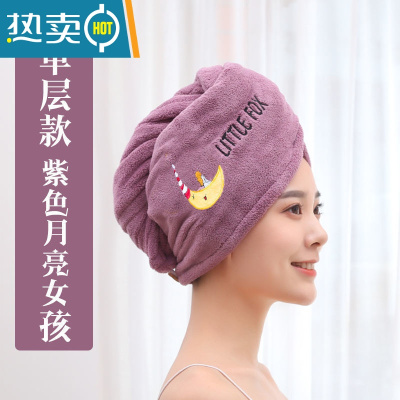 敬平干发帽女长发成人吸水新款速干可爱浴帽包头巾擦头发 加厚单层 紫色月亮