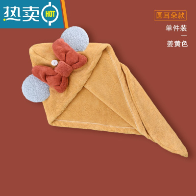 敬平干发帽吸水速干浴帽擦头发头巾加厚可爱洗头干发巾2021新款女 圆耳朵款-姜黄色