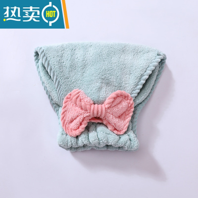 敬平干发帽女洗包头巾擦头发浴帽吸水速干加厚毛巾可爱干发巾 套头款青绿色