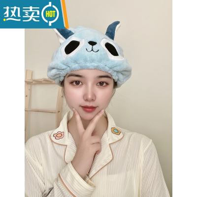 敬平干发帽女吸水速干洗头包头发毛巾包头巾可爱卡通2022新款浴帽 蓝小汪干发帽