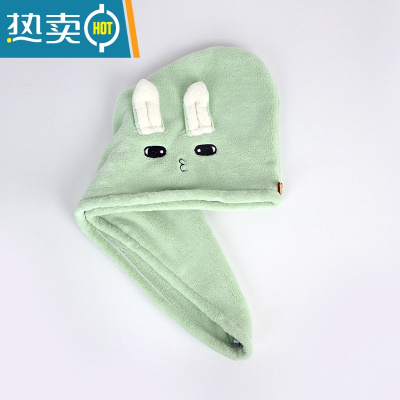 敬平韩日好货!2022新款儿童干发帽女童吸水速干宝宝婴儿速干帽 双层加厚萌兔兔(绿色)
