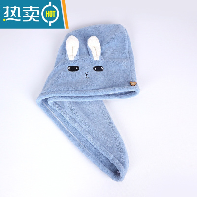 敬平韩日好货!2022新款儿童干发帽女童吸水速干宝宝婴儿速干帽 双层加厚萌兔兔(蓝色)