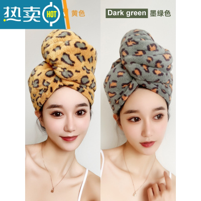 敬平豹纹干发帽女吸水速干2022新款高端浴帽洗头擦头发的吸水毛巾 [双层]♥黄色+墨绿色