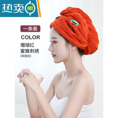 敬平佳埼推荐干发帽女吸水速干包头巾擦头发毛巾2021新款加厚浴帽 蜜蜂刺绣[加厚超吸水]晶红