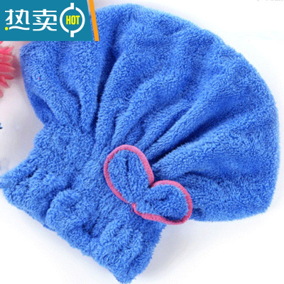 敬平干发帽女可爱蝴蝶结吸水加厚浴帽洗头擦头吸水速干包头发毛巾 蓝色