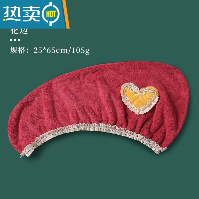 敬平干发帽吸水速干加厚2021新款女长发可爱擦头包头毛巾器浴帽 [蕾丝边]爱心酒红