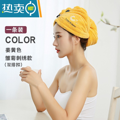 敬平干发帽吸水速干加厚2021新款浴帽洗头可爱擦包头发干发巾毛巾 黄色-小雏菊[单个装]升级加厚
