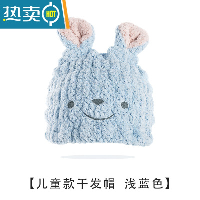 敬平儿童干发帽女童吸水2021浴帽新款可爱宝宝洗头包头发速干毛巾 浅蓝色(1-10岁儿童款干发帽)
