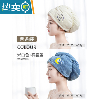 敬平双层加厚干发帽女吸水速干器擦头发毛巾可爱包头浴帽速干帽 升级加厚[米白色+雾霾蓝][换洗2条装]