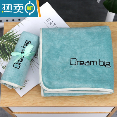 敬平5条装 毛巾比吸水易干浴巾套装情侣超细纤维干发巾家用 绣字款(毛巾+浴巾)湖绿色2件套 35x75cm