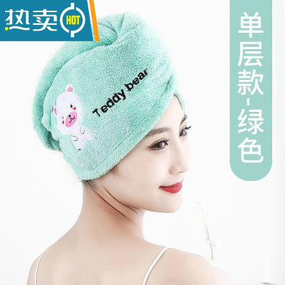 敬平干发帽女长发成人吸水新款速干可爱浴帽包头巾擦头发 [刺绣款]加厚单层[绿色小熊]