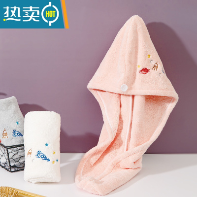 敬平吸水速干刺绣干发帽女浴帽擦头毛巾干发巾洗包头巾 粉色