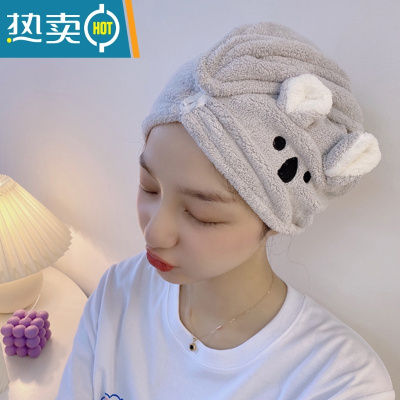 敬平干发帽吸水速干加厚2021新款女长发可爱擦头包头毛巾器浴帽 [可爱树袋熊]浅紫