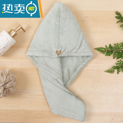 敬平干发帽吸水洗头发浴帽毛巾包头女加厚成人长发擦头巾器速干 单层豆绿色1条装