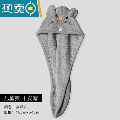 敬平儿童干发帽吸水速干女浴帽擦头发秋冬洗头加厚干发巾2021新款 高级灰[兔耳朵 儿童款]加厚干发帽