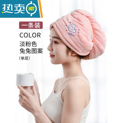 敬平干发帽女吸水速干浴帽擦头发吸水毛巾可爱包头巾干发巾 单层粉色兔兔