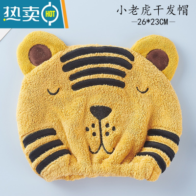 敬平2021新款儿童干发帽女童吸水速干浴帽宝宝可爱洗头包头巾器 小老虎干发帽黄色