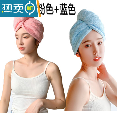 敬平2021新款干发帽吸水洗头发速干毛巾包头女加厚浴帽擦头巾器 粉色+蓝色[单层加厚]