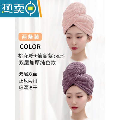 敬平干发帽女双层加厚吸水速干包擦洗头发毛巾2022新款包头巾浴帽 桃花粉+葡萄紫 双层加厚(速干 护发)
