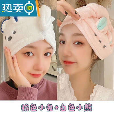 敬平干发帽吸水浴帽头发速干毛巾包头女可爱加厚干发巾洗头发浴帽 粉色小兔+白色小熊